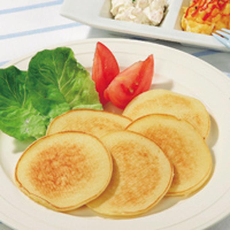 フライパンにサラダ油を薄くひいて熱し、生地をお玉ですくって流し入れる。表面がふつふつしてきたらフライ返しなどで裏返し、もう片面も焼いて火をとおす。(両面ほどよく優しい焼き色がつく程度。)