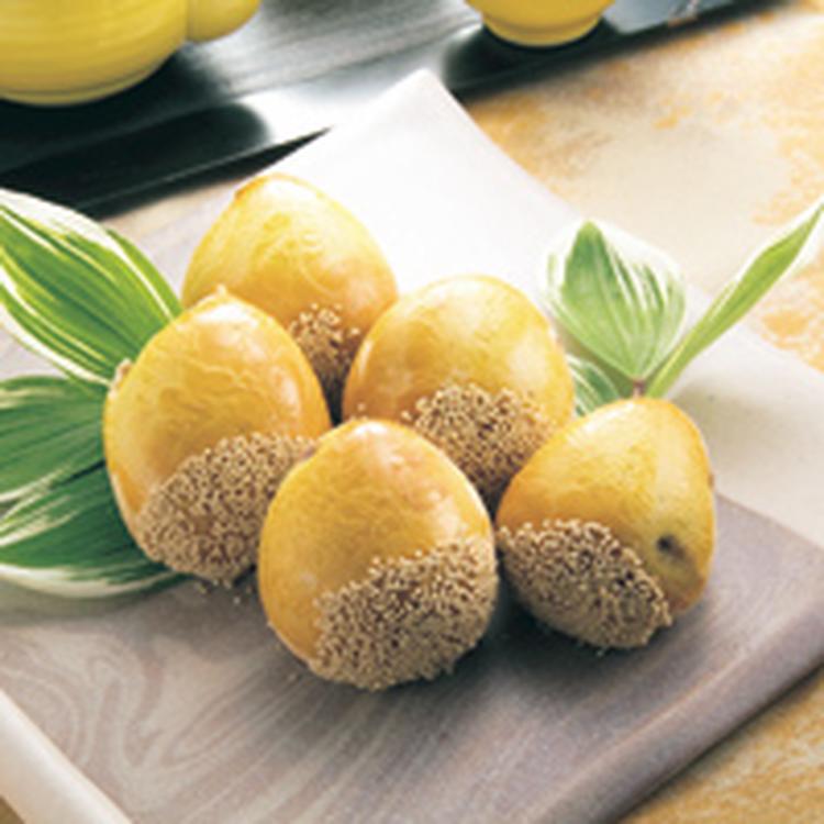 焼けたら卵白を泡立てたものをまんじゅうの下1/3につけ、けしの実をまぶす。