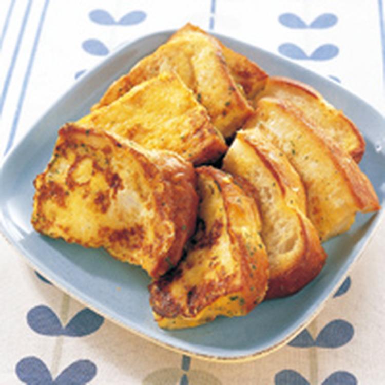 Aを混ぜ合わせて(1)を浸す。途中で裏返し、パンの両面に卵液をしみこませる。