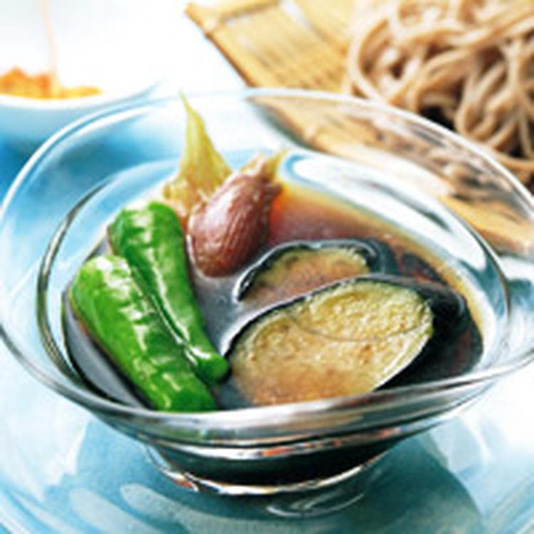 みょうがは縦に2等分、ししとうはへたをとり、竹串で2~3カ所穴を開けておく。なすは1cm幅の斜め切りにし、水に放してあくをぬく。ざるにあげて水をきっておく。