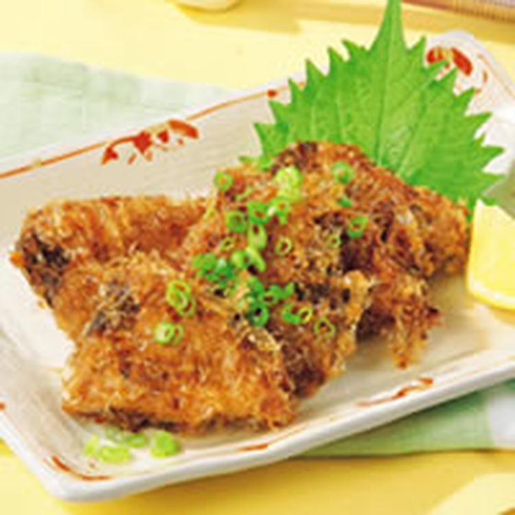 揚げ油をやや低めの中温で熱して、(3)を入れてカラリと揚げる。よく油をきって盛りつけ、青じそを添えてねぎの小口切りを散らす。