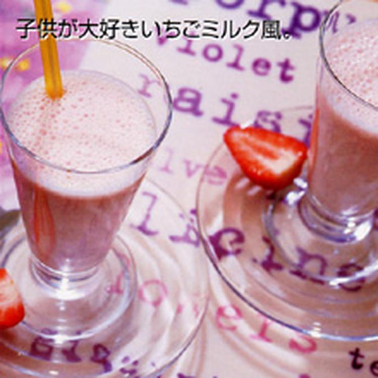 (1)をミキサーに入れ、ヨーグルト、牛乳、コンデンスミルクを入れて撹拌する。なめらかになったら味をみて甘さをコンデンスミルクで調節し、再度ミキサーにかけてグラスに注ぐ。