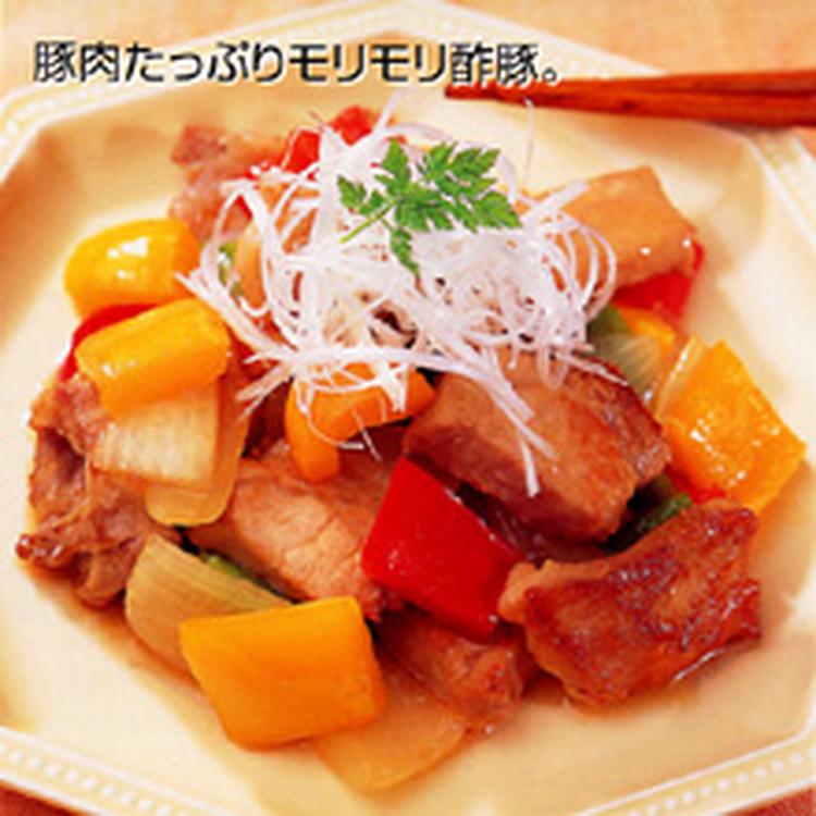 続けてピーマンを加えてさっと炒め、豚肉をもどし、合わせ調味料を加える。煮立ってきたら片栗粉小さじ2を水大さじ1・1/2で溶いて加え、とろみがついたら火をとめる。