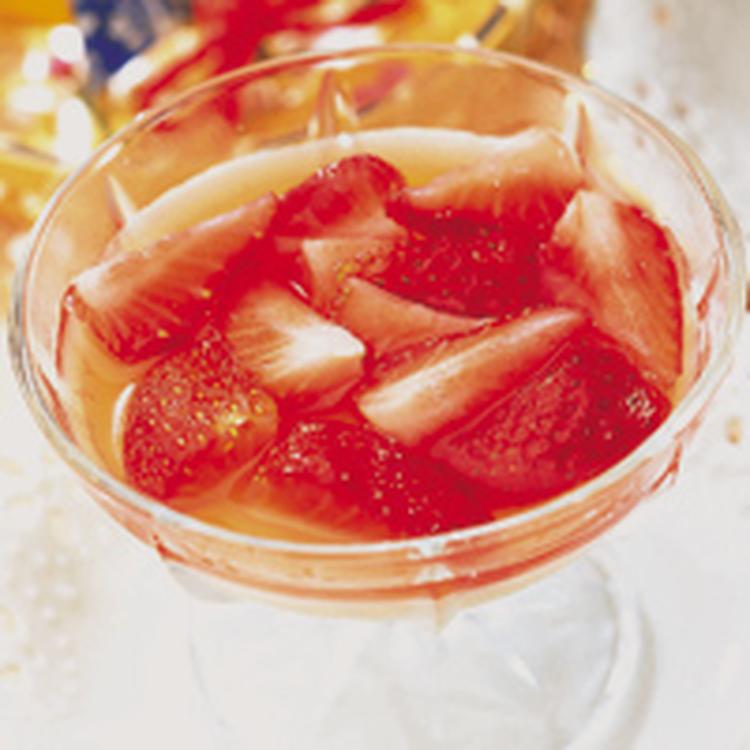 粗熱がとれたら型に流し入れ、冷蔵庫で2~3時間冷やし固める。固まったブラマンジェに(2)のいちごソースをたっぷりとかけていただく。