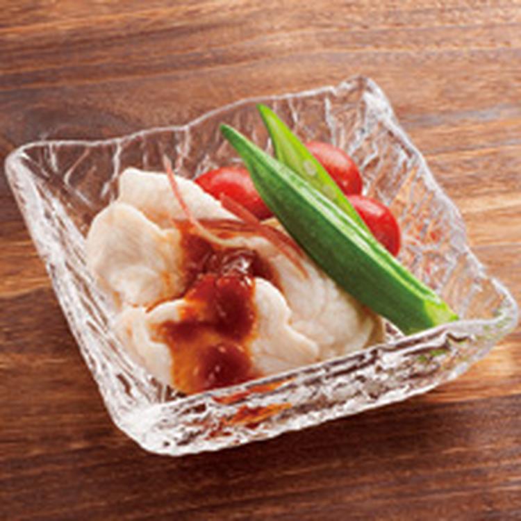 鍋に湯6カップ・酒・塩を入れて煮立て、(1)を入れて浮き上がるまで約2分ゆで、氷水でしめて水気を切る。同じ湯でオクラもゆでて氷水でしめ、水気を切って縦半分に切る。同じ湯でミニトマトを湯むきする。器にミョウガと共に彩り良く盛る。