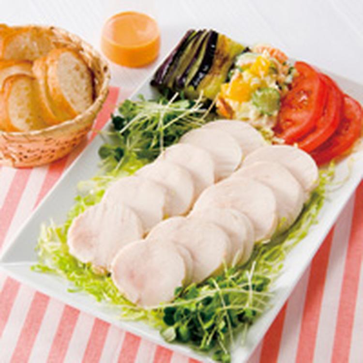 やわらか鶏ハム&種々の野菜をオープンサンドにしても