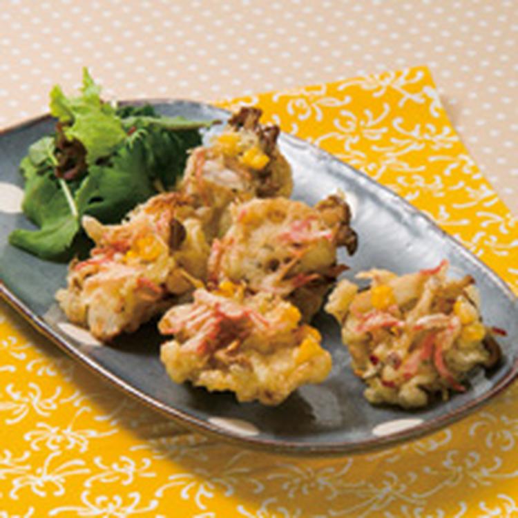 浅漬けにお肉やコーンを加えてかき揚げ風に