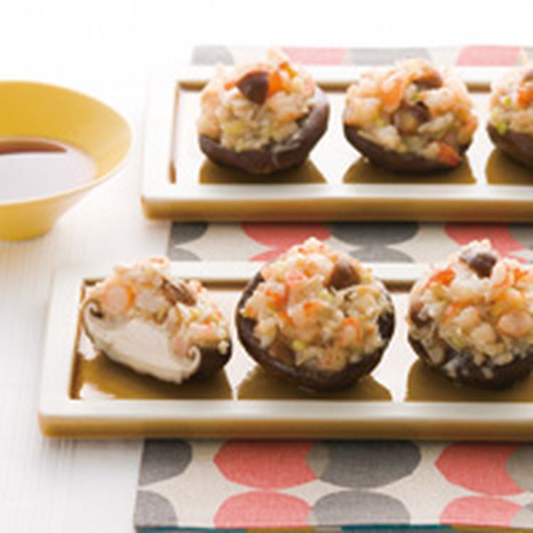 肉厚のしいたけとゴロゴロ海老の食感を楽しんで
