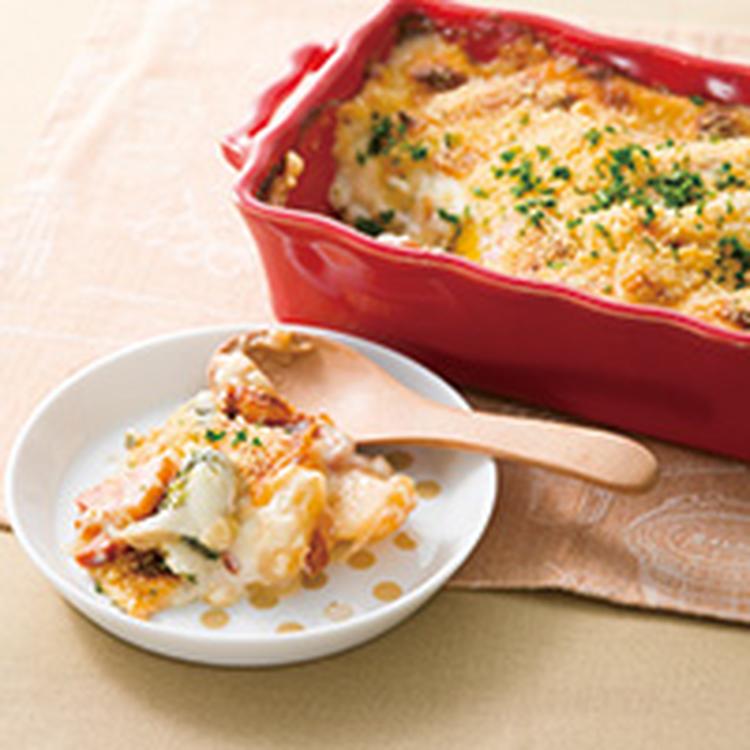 クリーミーでコク深いホワイトソースが たっぷり具に絡んだ、やさしい味のグラタンの作り方をご紹介。