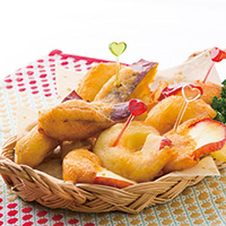 季節の野菜と果物をふわふわ衣に包んだ揚げ物