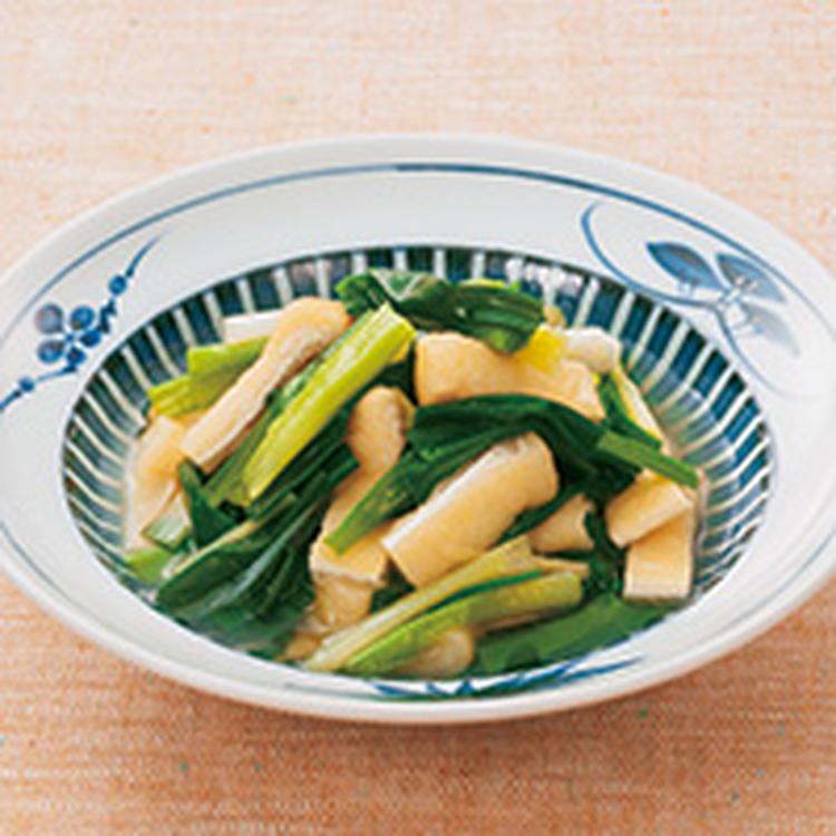 鍋にしょうが・Aを入れて中火にかけ、ひと煮立ちしたら(1)の油揚げを加える。再び煮立ったら(1)のわけぎを根元・葉の順に加え、上下を返しながらサッと煮て器に盛る。