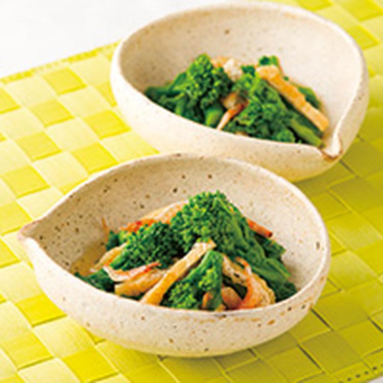 菜の花は塩を入れた熱湯で茹で、粗熱を取って横2等分し水気をきる。油揚げは、グリルでさっと焼き、横2等分して5mm幅に切る。