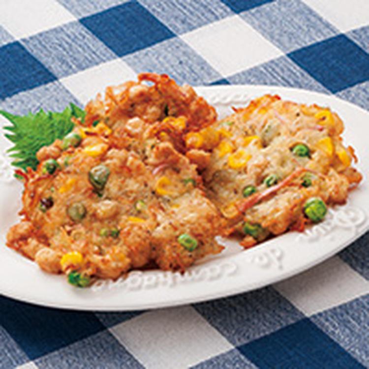 フライパンに多めのサラダ油を中火で熱し、(1)をお玉1杯分ずつすくい入れ、両面をこんがりと揚げ焼きにしたら器に盛って大葉を添える。