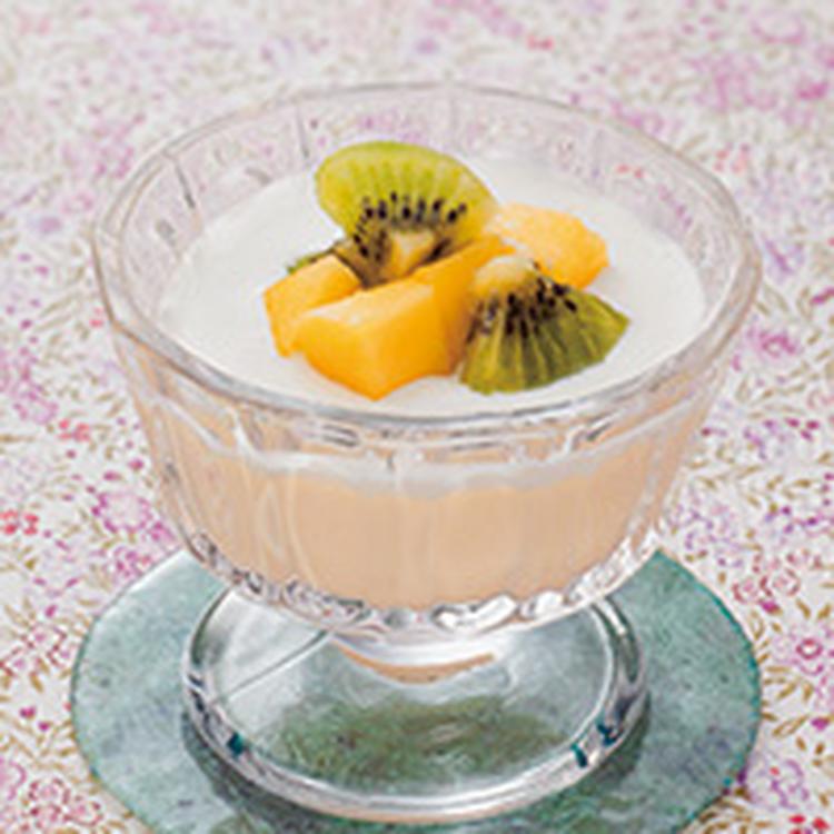 こし器を通してボウルに移し変え、底を氷水に当ててゴムベラで混ぜながら粗熱を取る。器に流し入れ、冷蔵庫で約1時間冷やし固める。