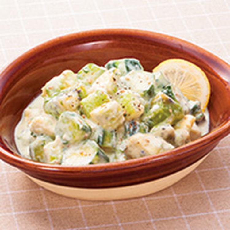 ボウルに(1)のヨーグルト・きゅうりを入れ、混ぜ合わせる。