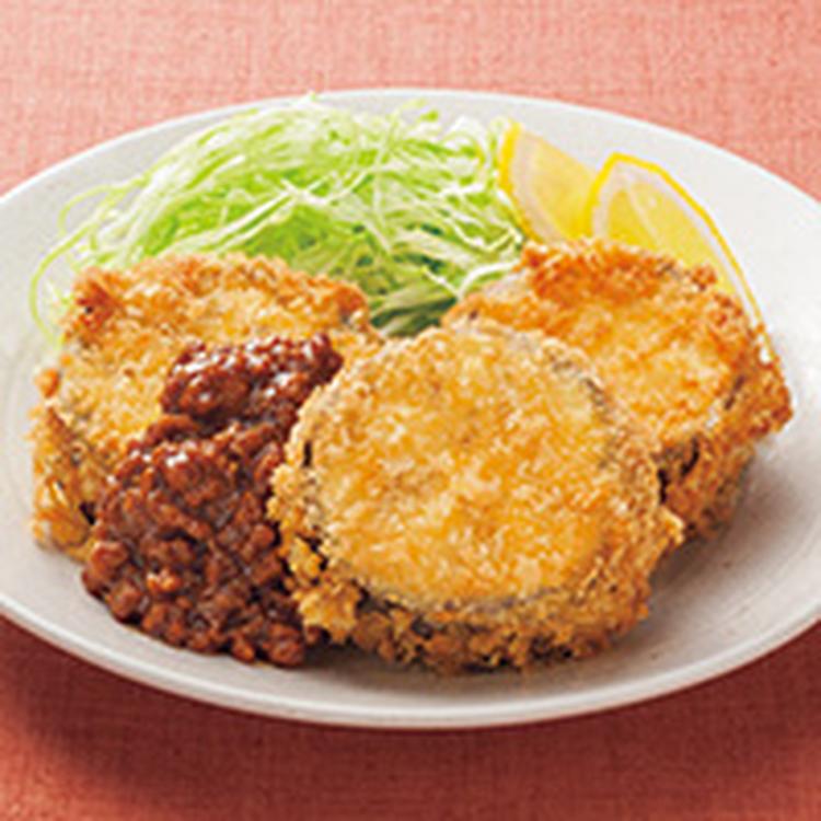 なすは塩・こしょうを振ってBを順につけ、中温の揚げ油でカラリと揚げたら器に盛り、(1)をかけてキャベツ・レモンを添える。