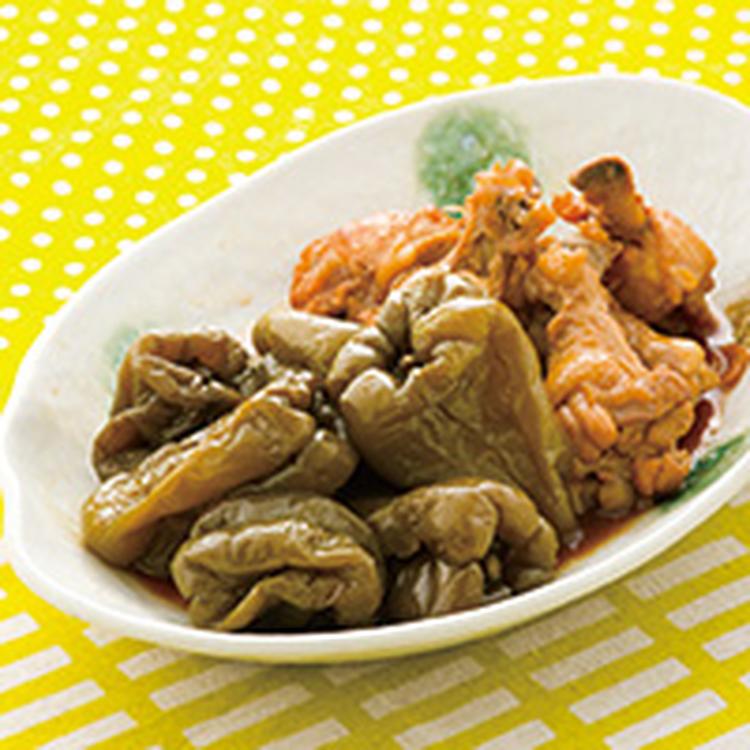 (1)にピーマンを丸ごと加え、弱火で時々ピーマンをひっくり返しながら煮る(あっさり味にするなら弱火でじっくり、こってり味にするなら中強火で汁気を飛ばしながら煮る)。