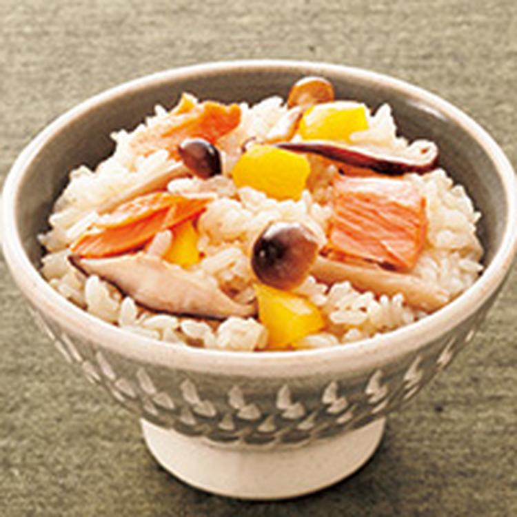 炊きあがったら鮭の骨と皮を取り除き、栗を加える。鮭をほぐすように全体をさっくり混ぜ、約5分蒸らしたら器によそう。