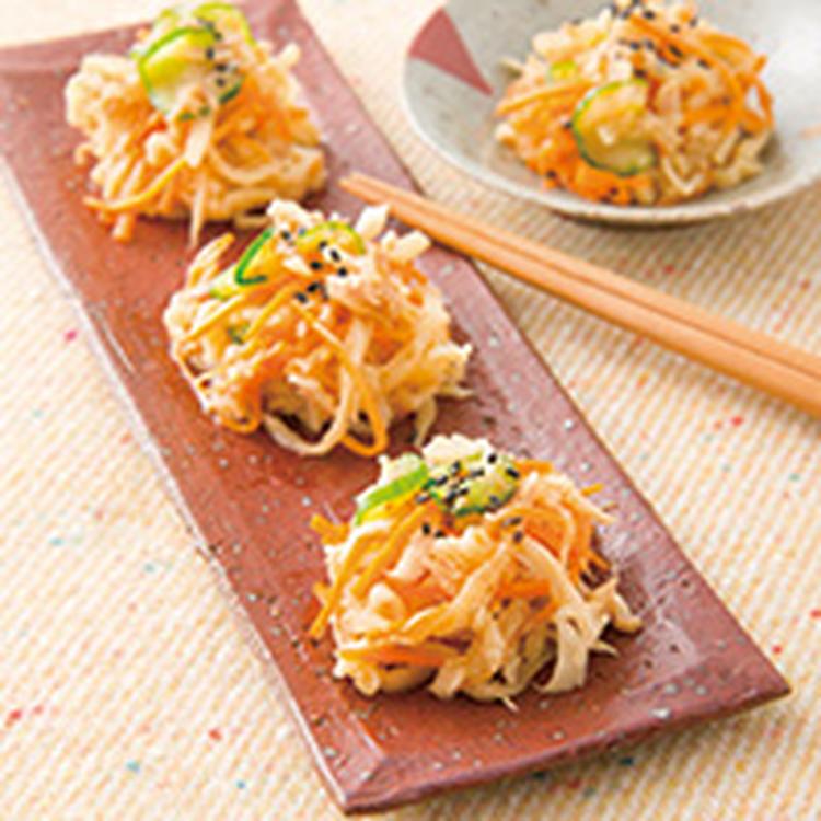 カミカミ料理です。切り干し大根と野菜の食感を楽しんでください。