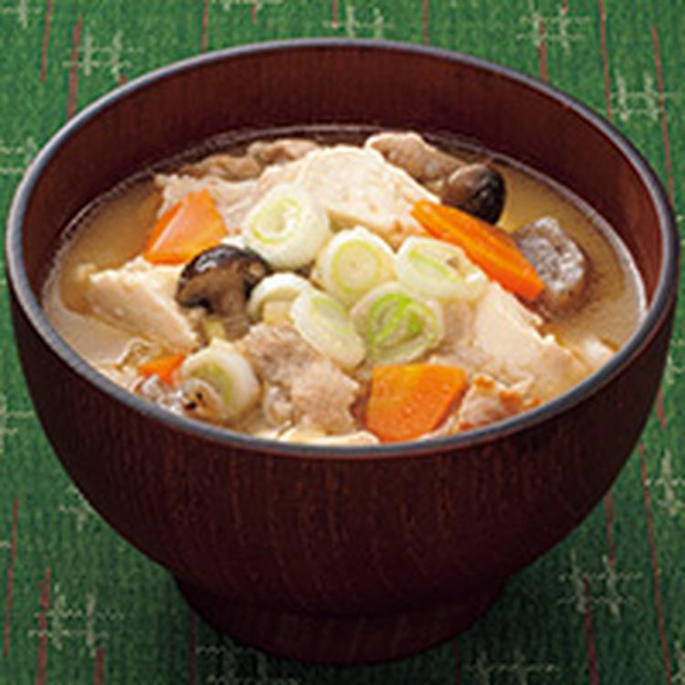 煮立ったらあくを取り除いて豆腐を手でくずして加え、蓋をして弱火で約5分煮る。みそを加えて溶かし、器に注ぐ。