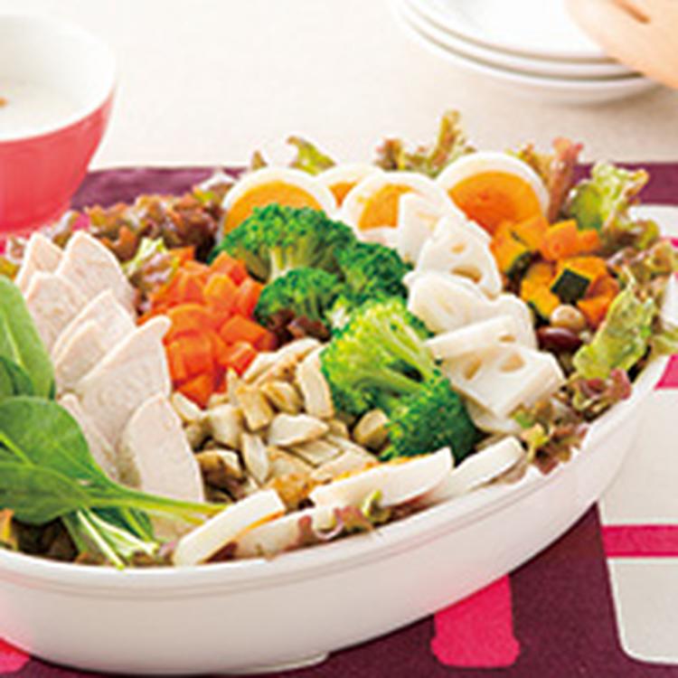 たっぷり冬野菜と鶏ムネ肉のチョップドサラダ