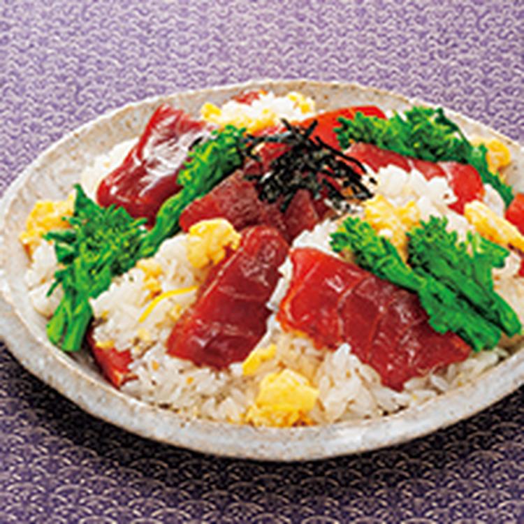 ボウルにAを混ぜ合わせ、まぐろを約20分漬ける。フライパンにサラダ油を中火で熱し、混ぜ合わせたBを流し入れて炒り卵を作る。