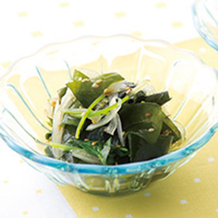 わかめは熱湯にさっとくぐらせて冷水に取り、食べやすく切る。三つ葉もさっと茹でて冷水に取り、3cm長さに切る。