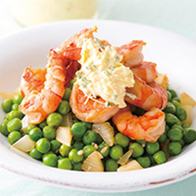 【グリンピースのさっと煮 変身レシピ】グリンピースと海老のペペロンサラダ