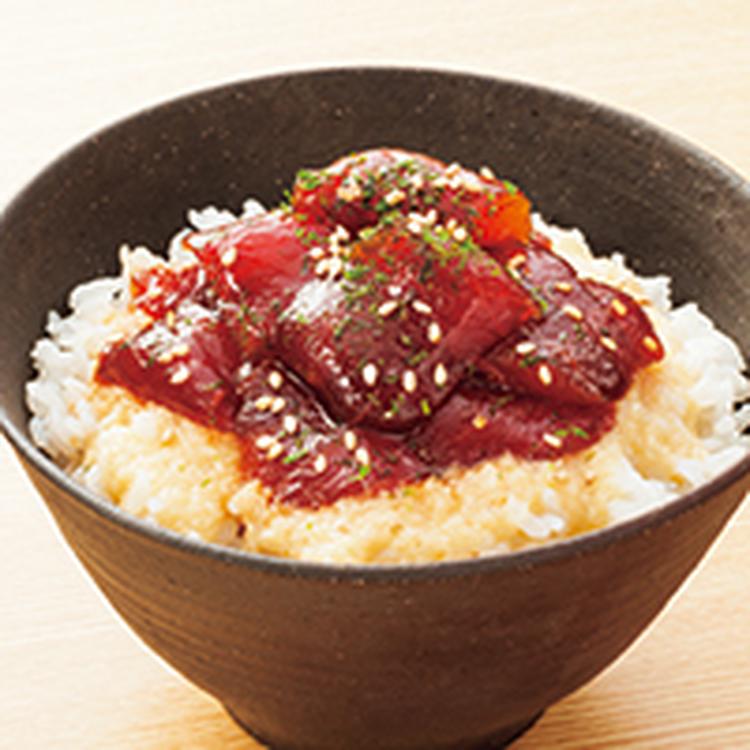 丼にご飯をよそい、(1)をかけて(2)を盛り、青のり・白ごまを散らす。