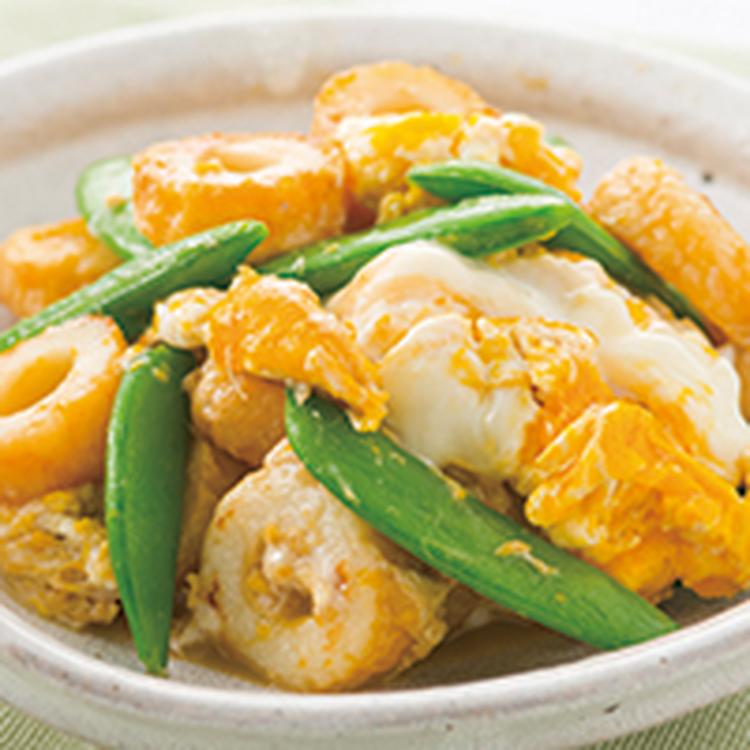 フライパンにサラダ油を熱し、ちくわの両面を焼き、えんどうを入れてAを加え、味をなじませる。