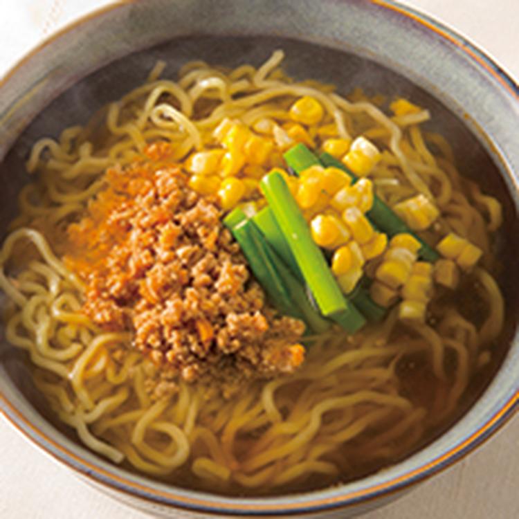 ひき肉だねで作ったフワフワそぼろを麺のトッピングに