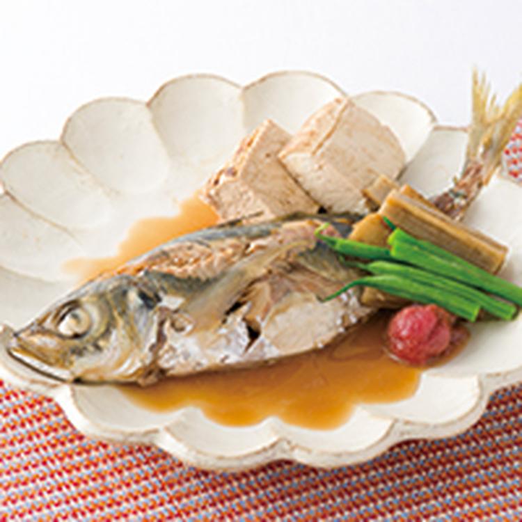 鍋にAを煮立て、あじ、梅干し、焼き豆腐、ごぼうを入れ、中火で煮汁を時々かけながら15分ほど煮る。