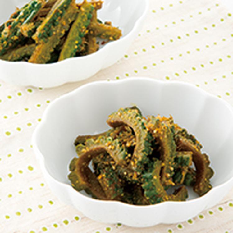 ゴーヤ1本分は、横4等分にし幅7〜8mmの縦細切りにする。残りは幅7〜8mmの横切りにする。