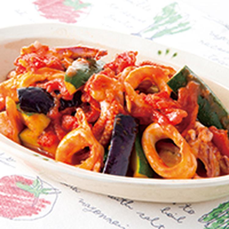 いかと夏野菜のトマト煮