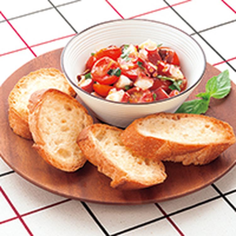 バゲットに混ぜ合わせたAを塗り、トースターでこんがりと焼く。