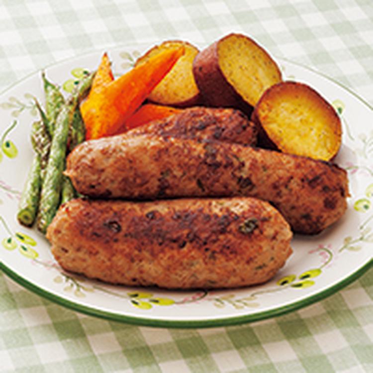 ボウルにA・冷水大さじ2を入れ、粘りが出るまでよく混ぜる。ラップを長く広げ、約60cm長さになるように棒状に包み、所々ひねってソーセージの形にする。これを2本作る。