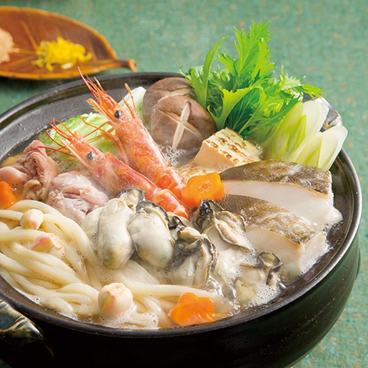 旬の魚介と野菜をたっぷり入れた大満足のボリューム鍋