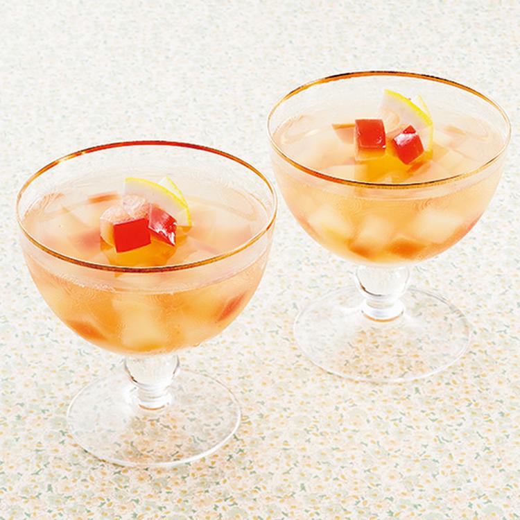 鍋にグラニュー糖・水150mlを入れて中火にかけ、グラニュー糖が溶けたらワインを加えてひと煮立ちさせる。火を止め、(1)を入れて溶けるまで混ぜる。