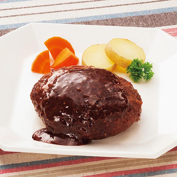 ふんわりとラップをかけ、電子レンジ(600W)で約6分加熱する。裏返して再びラップをし、約2分加熱してハンバーグをとり出し、器に盛る。