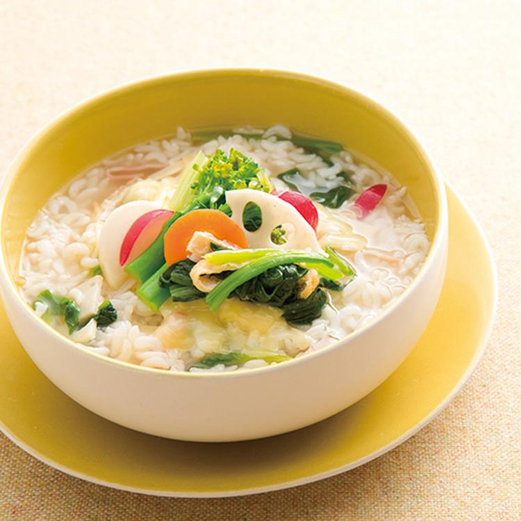 【ほうれん草と油あげのさっと煮アレンジ】洋風七草がゆ