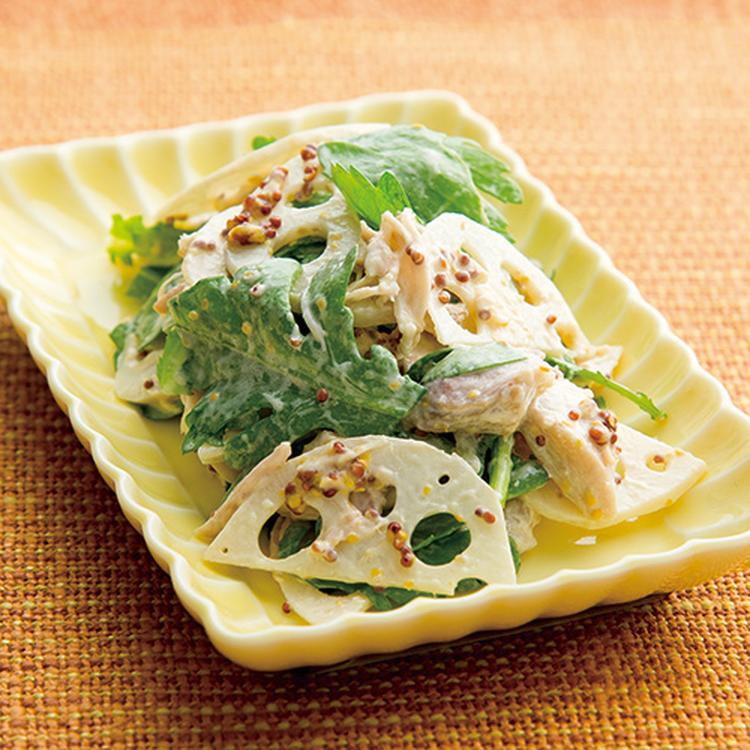 【簡単参鶏湯(サムゲタン)アレンジ】ほぐし鶏と冬野菜のマヨマスタードサラダ