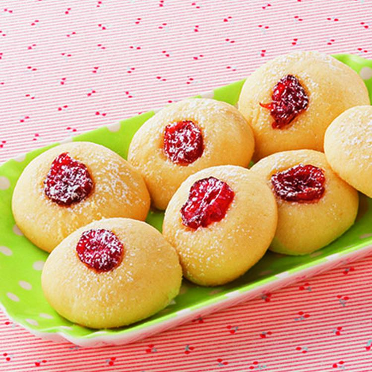 ドライクランベリーを押さえるようにしてのせ、160度に予熱したオーブンで約16分焼く。粗熱がとれたら粉砂糖を振って器に盛る。