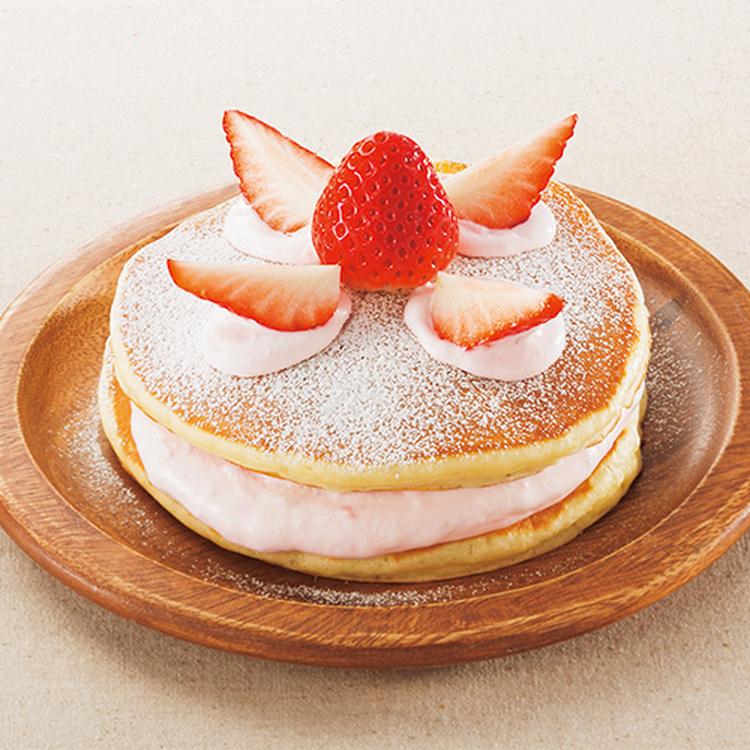 別のボウルにAを入れて泡立て器で混ぜ、ホットケーキミックスを加えてさっくりと混ぜ合わせる。フライパンに無塩バターを中火で熱し、生地を流し入れてパンケーキを2枚焼く。