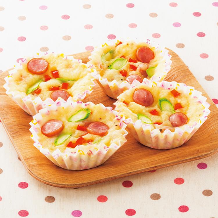 ペーパーカップ8個に(1)を流し入れ、ラップをかけずに電子レンジ(600W)で約4分加熱して器に盛る。