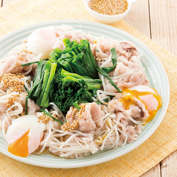 もやし、(1)を合わせて器に盛り、A、温泉玉子をのせ、合わせたBをかけて混ぜながらいただく。