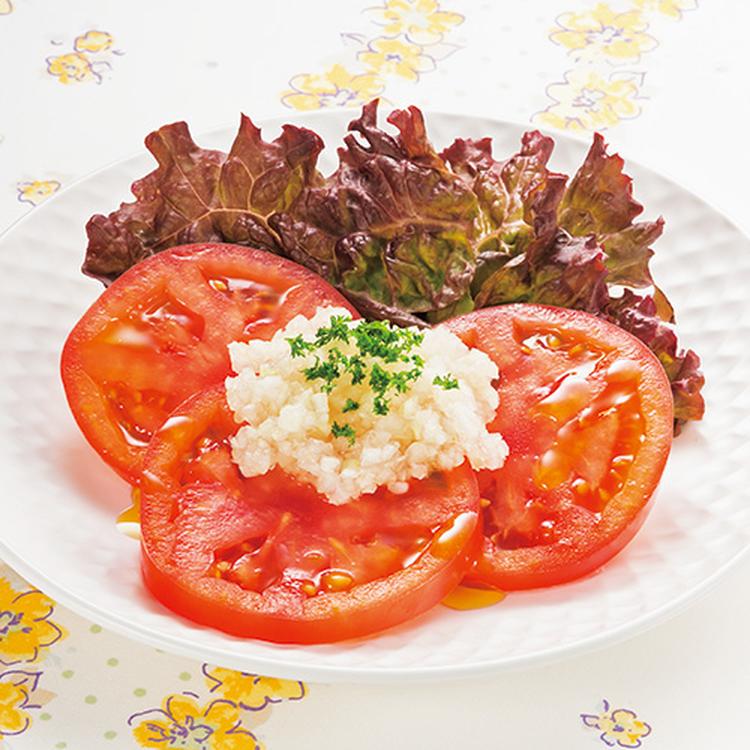 器にサニーレタスを敷いてトマトを並べ、(1)・オリーブ油をかけてパセリを振る。