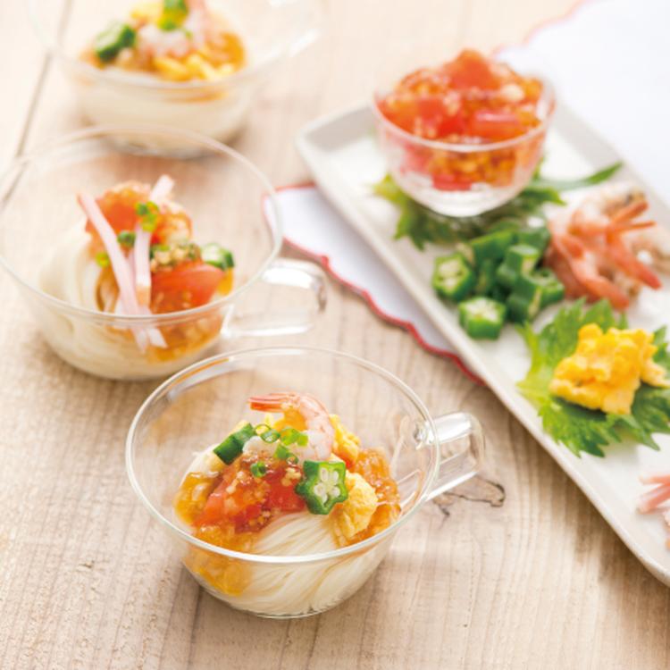 湯むきトマトジュレで彩りそうめん