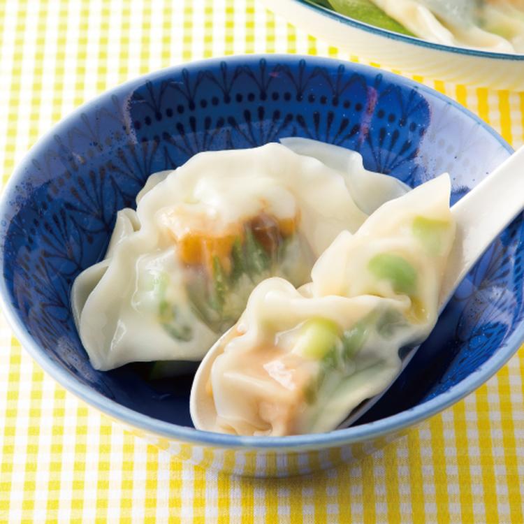 沸騰した湯に(1)を入れ、浮いてきたら器に取る。