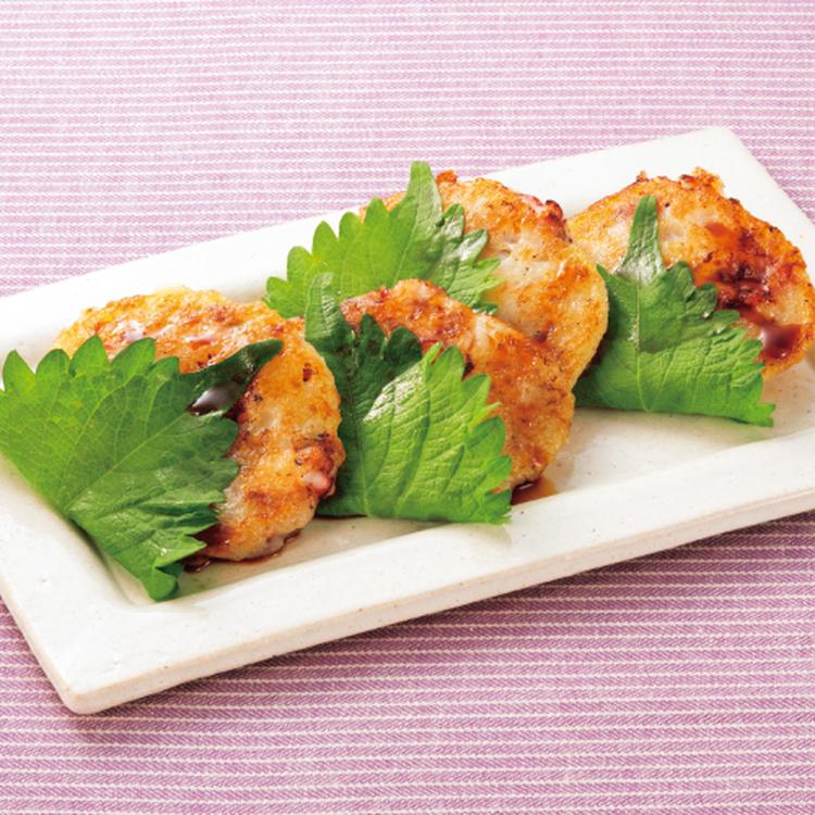 粗熱がとれたら大葉を巻いて器に盛り、お好みでしょうゆをかけていただく。