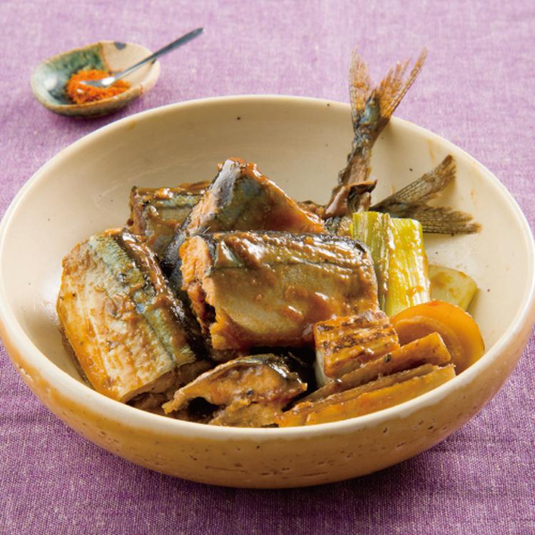 鍋に合わせたAとごぼうを入れてひと煮たちしたら、さんま、焼きとうふ、長ねぎを入れる。